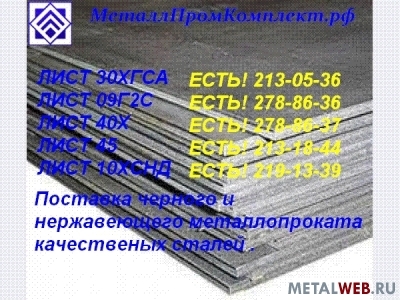 Лист 40Х, Лист 30ХГСА, Лист конструкционный. Наличие. Цена. Резка. Доставка. Экспорт