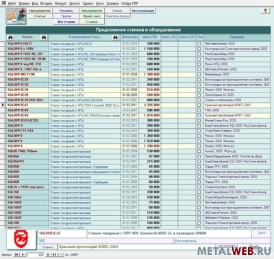 База данных. Продавцы, предложения, цены - Станки металлорежущие