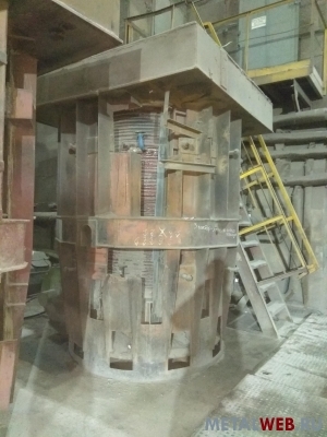 Индукционная тигельная электропечь промышленной частоты емкостью 10 т. ИЧТ-10/2, 5-Н2 индивидуального исполнения предназначена для плавки чугуна.